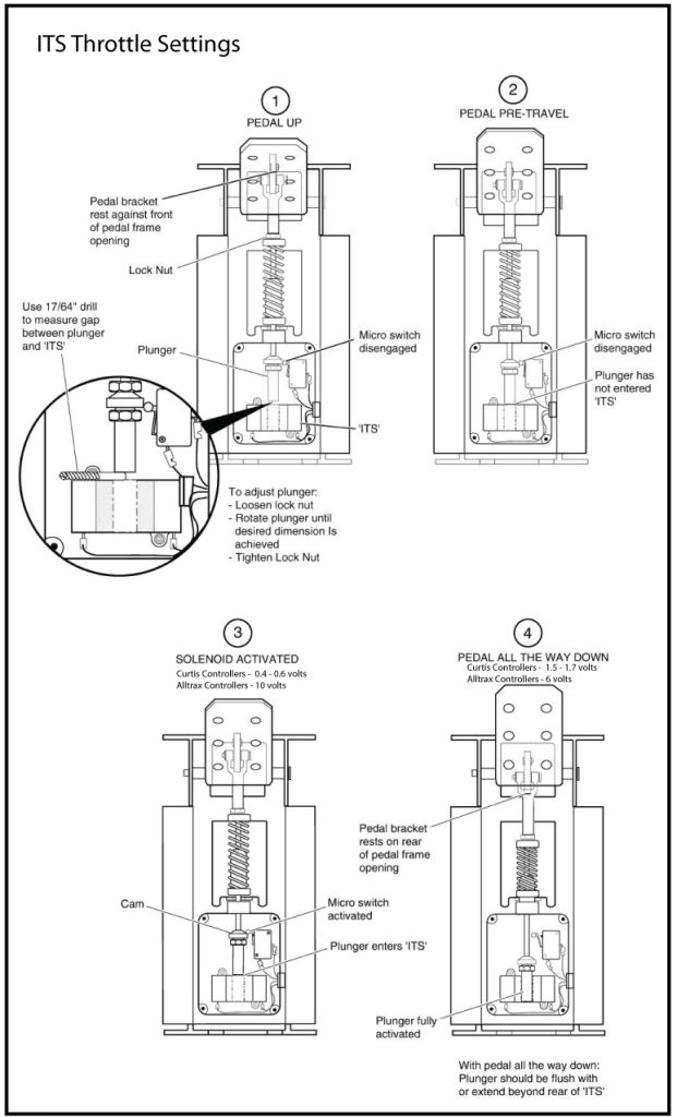EZGO ITS Throttle AdjustmentsSee the diagram at the bottom of this page for the correct physical settings for the ITS throttle.