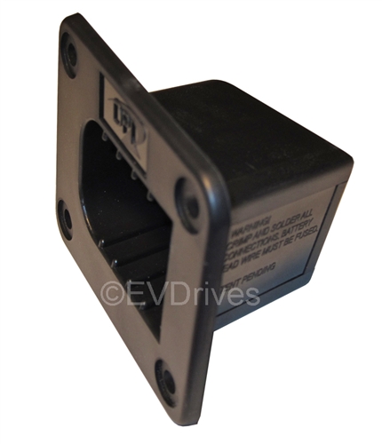 DPI designed and supplied 36V E-Z-Go female charger connector for D-Style plugs. It comes with pin sockets, holding clamp, 40 Amp battery fuse and an assembly manual.