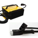 The Delta-Q QuiQ charger is an advanced, high frequency charger that is small and light. The charger is completely sealed, is passively cooled without the use of fans, and can withstand temperature extremes, moisture and high vibration. The QuiQ charger is programmed with 10 charge profiles for both wet and sealed batteries. It can be used worldwide as it operates at both 120 volts and 230 volts. These are commonly used on golf cars, electric vehicles, floor scrubbers, and battery powered sweepers.